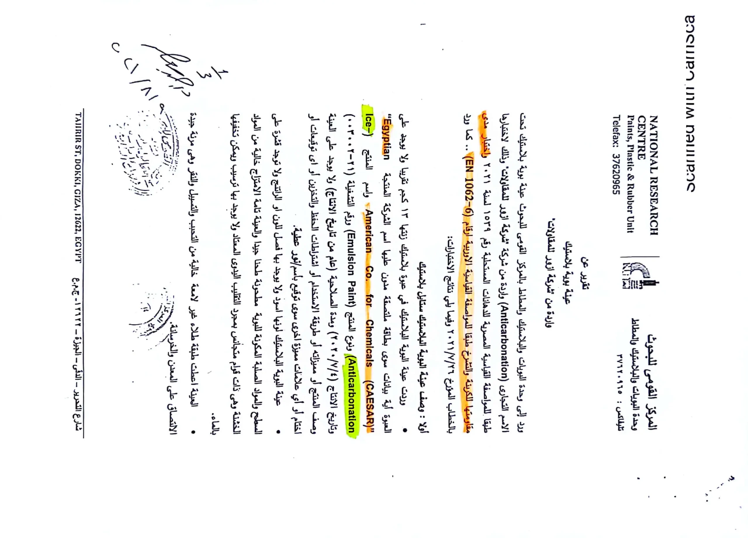 اعتمادات المركز القومي للبحوث للمنتجات